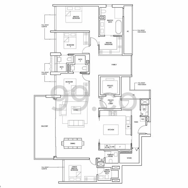 They originally purchased the unit in November 2021 from the developer for S$7.96 million or S$3,302 psf. At the time, this was 5.2% above the project-wide average of S$3,138 psf, though it was slightly below the 4-bedder segment’s average of S$3,324 psf.