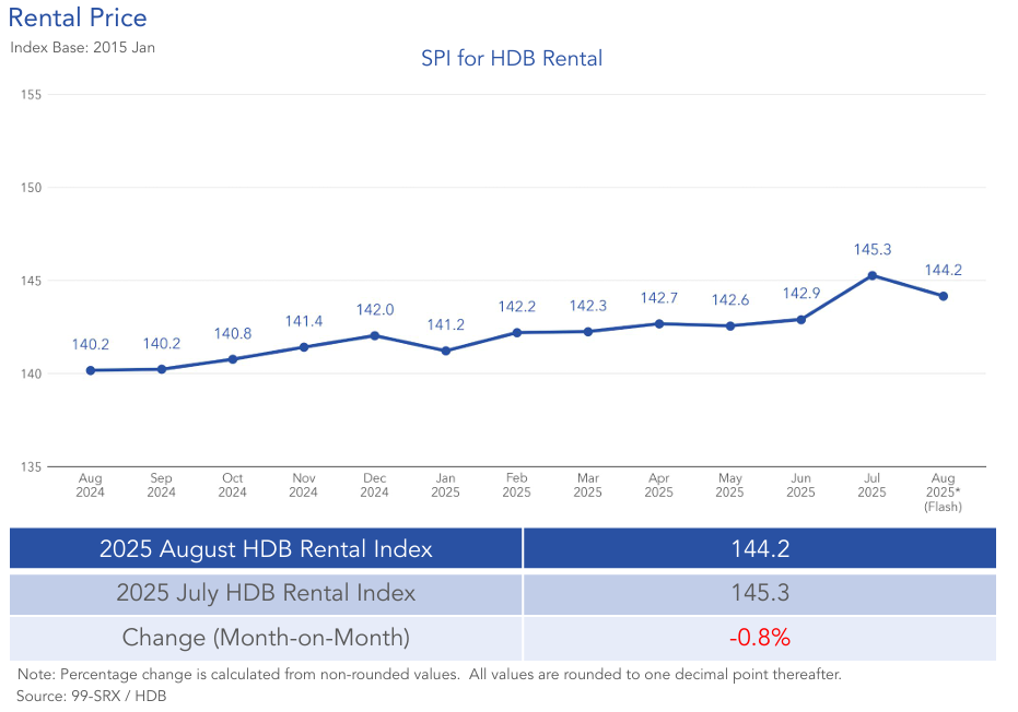 HDB rental prices saw a slight month-on-month decline of 0.8% last month. The seasonal lull and potential increase in available flats raises supply-side pressure, which can weigh on monthly rent prices, and the market is reflecting this temporary softening.