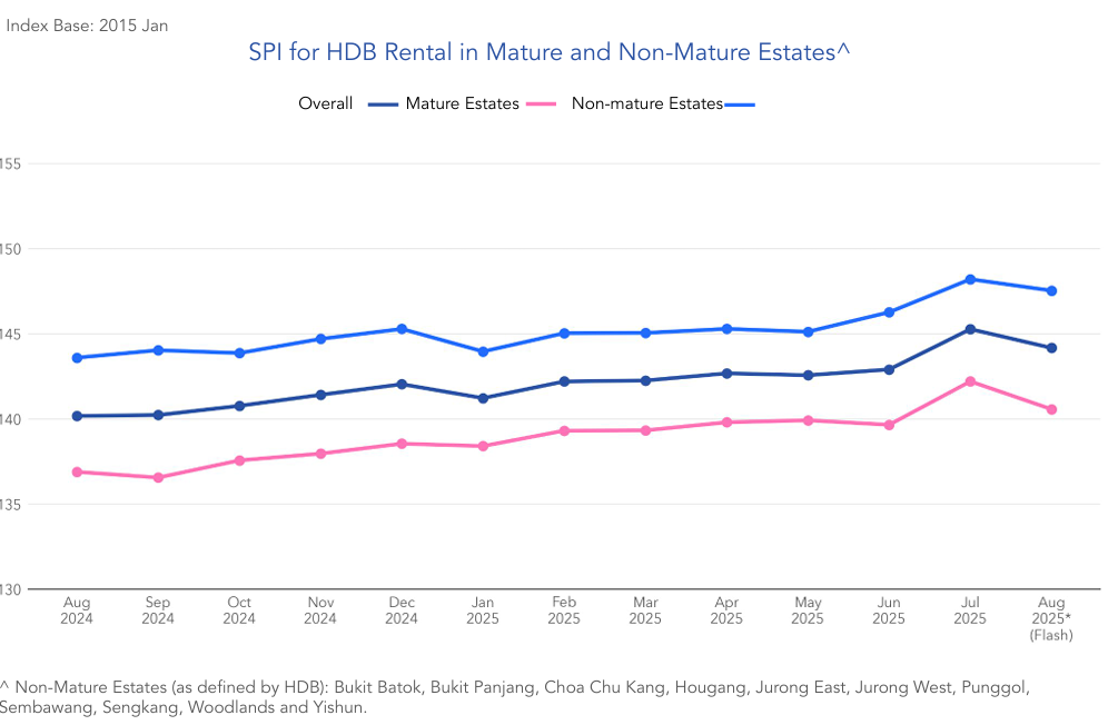 Despite these short-term price adjustments, year-on-year rental prices remained positive. Overall, HDB rents were up 2.8% compared to August 2024. Both Mature and Non-Mature Estates experienced equal year-on-year rental growth of 2.7%.
