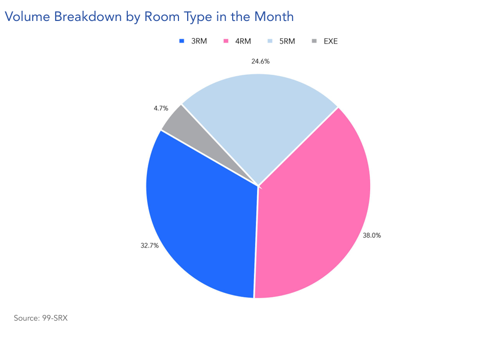 - 3-room flats had the second-largest share at 32.7%,