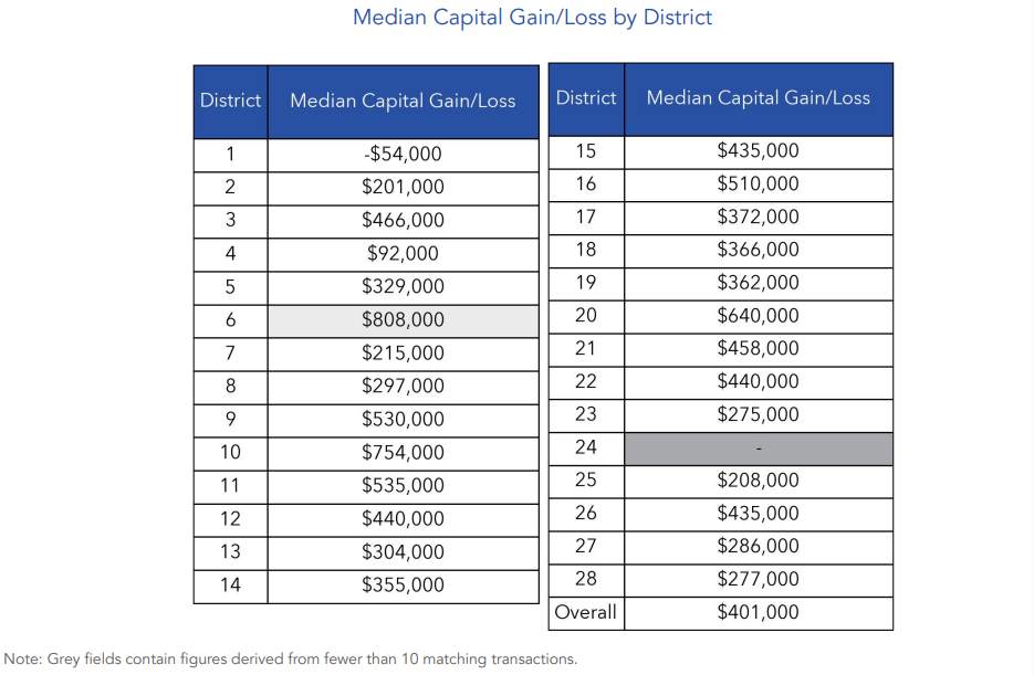 However, gains varied sharply across districts. District 10, which covers Tanglin, Holland, and Bukit Timah, recorded the highest median capital gain of S$754,000. In contrast, District 1, spanning areas like Boat Quay, Raffles Place, and Marina, posted a median capital loss of S$54,000.