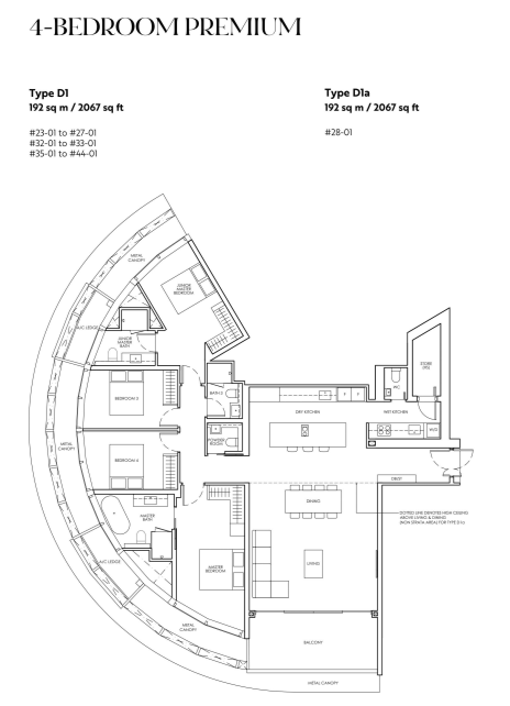 The sole 4-bedroom Premium layout occupies a corner stack and is one of the layouts featured at the sales gallery. It enjoys sweeping sea views and includes windows in two bathrooms. Although several areas of the layout are curved, the generous living space provides sufficient flexibility for creative interior design solutions, potentially turning these curves into a design feature rather than a drawback.