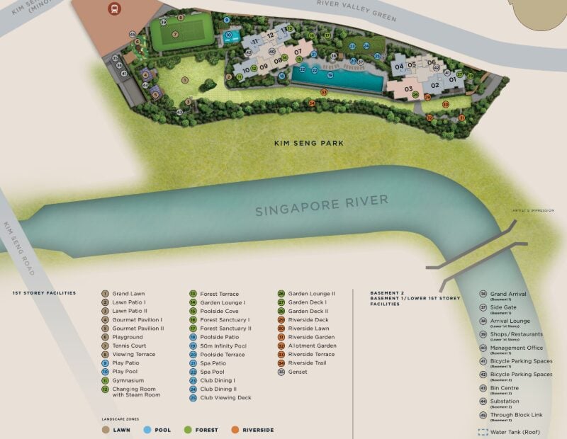 River Modern clubhouse overlooking the infinity pool and Kim Seng Park (Source: Guocoland)