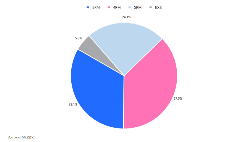 Breaking down the rental transactions by flat type, 4-room flats remained the most commonly rented unit type, accounting for 37.5% of total HDB rental transactions. This was followed by 3-room flats at 33.1%, 5-room flats at 24.1%, and Executive flats at 5.3%. The dominance of 3-room and 4-room flats highlights their continued appeal among tenants seeking a balance between affordability and space.