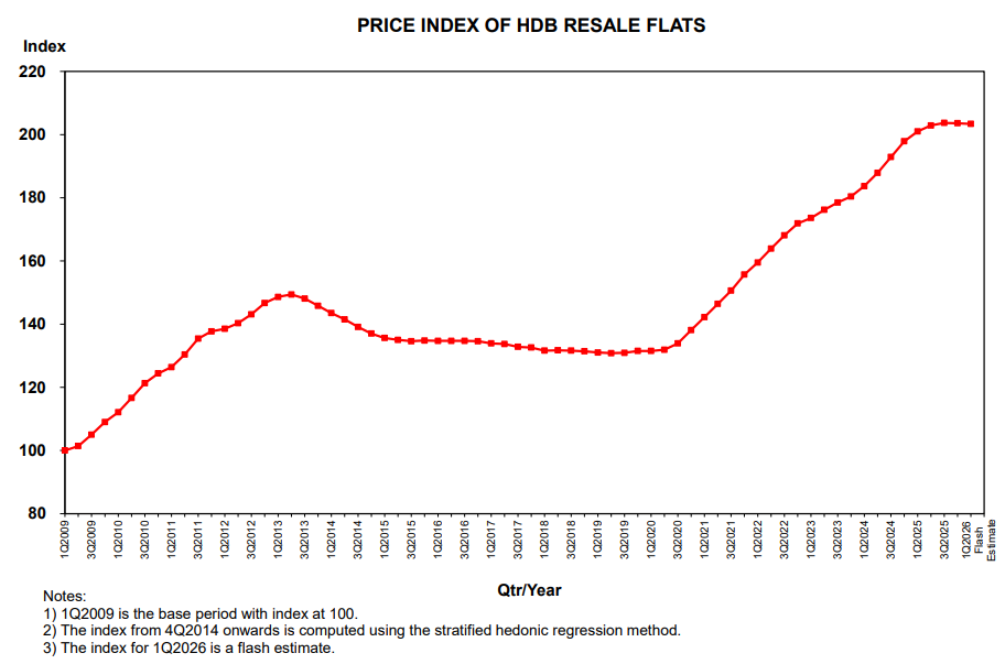 In contrast, flash estimates from the HDB show that the resale price index declined by 0.1% quarter-on-quarter in Q1 2026. This marks the first quarterly drop since Q2 2019, ending a prolonged period of modest but steady price growth. While the decline is marginal, it signals an important turning point for the public housing market: After several years of gains, conditions are starting to rebalance.