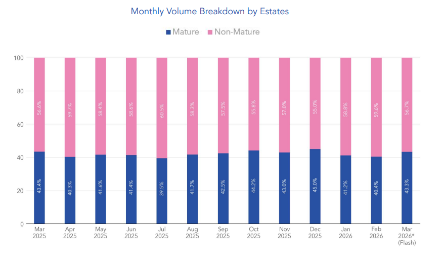 Looking at the regional split, Non-Mature Estates accounted for 56.7% of total transactions. Meanwhile, 43.3% of transactions took place in Mature Estates, representing a higher proportion compared to the first two months of the year. It means that a significant segment of buyers remains willing to pay a premium for established locations with better connectivity and amenities.