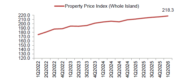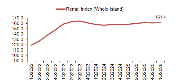 On the rental front, the market showed early signs of stabilising after a period of softness. Private home rental prices rose by 0.3% quarter-on-quarter in Q1 2026, reversing the 0.5% decline in the previous quarter. While the increase remains modest, it suggests that rental prices may be finding a floor following the cooling seen over the past two years.
